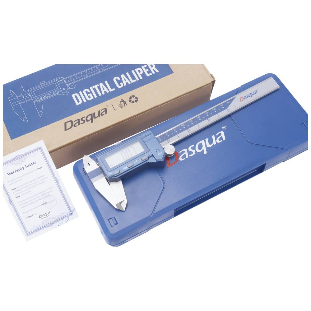 Șubler digital marca Dasqua fabricat din oțel inoxidabil DIN862 și cu carcasă de plastic, având interval de măsurare 0-150 mm și rezoluție 0.01 mm. Lungimea ciocurilor inferioare este de 40 mm și este prevăzut cu tijă standard pentru măsurarea adâncimilor. Specificații: